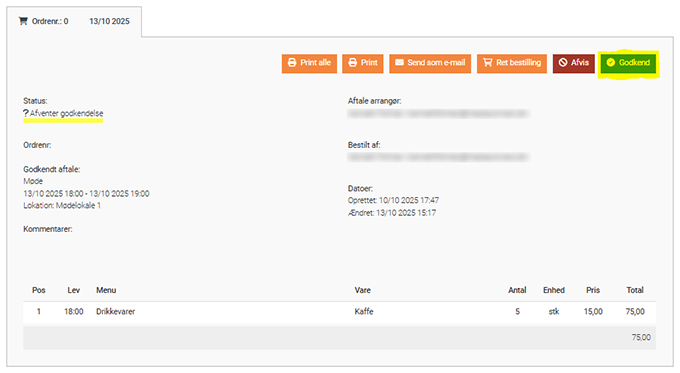 (NB! Du kan evt. se under Status se Afventer godkendelse, for at se at den pågældende ordre ikke er godkendt endnu.)