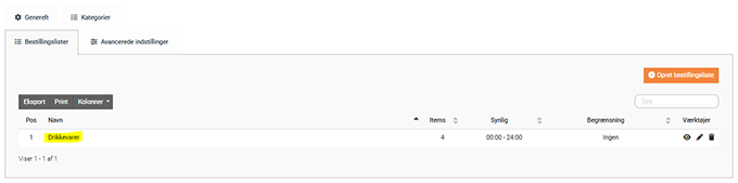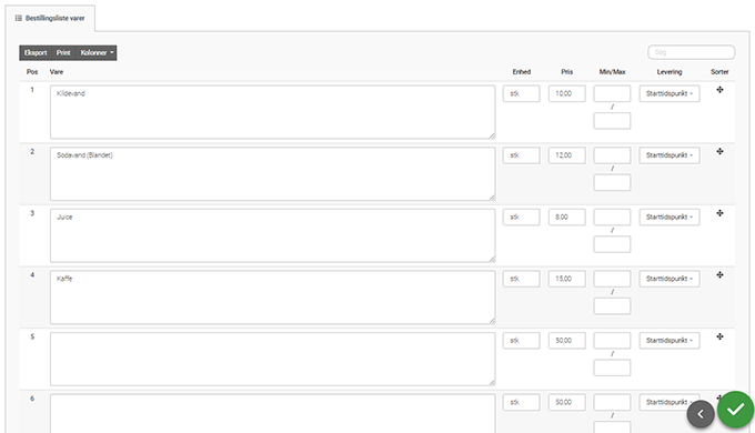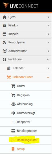 - Åben Funktioner -> Calendar Order -> Bestillingsliste.