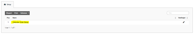 - Vælg det Calendar Order Setup, hvor Bestillingslisten er i.
