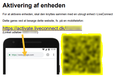 Åben linket fra det tilsendte Easy Activate dokumentet på f.eks. din mobil, ved enten at indtste adressen direkte i din browser, eller at scanne QR koden i dokumentet.