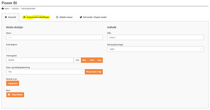 For at oprette et Power BI medie i din afspilningsliste, skal du gøre følgende: