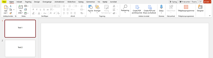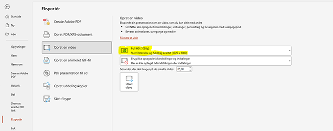 Hvis du ønsker at vise videoindhold i PowerPoint dokumentet og/eller overgangene imellem individuelle slides, så skal du eksportere hele PowerPoint dokumentet til en video-fil, hvilket du kan gøre i PowerPoint.