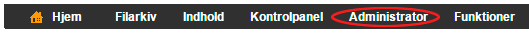 ”Brugere” bruges til at oprette, rette og slette brugere, samt tilknytte individuelle rettigheder. Det er indstillingerne på brugeren, der danner grundlag for hvilken type administrator man er, samt hvilke indstillinger man skal bruge for at logge ind.