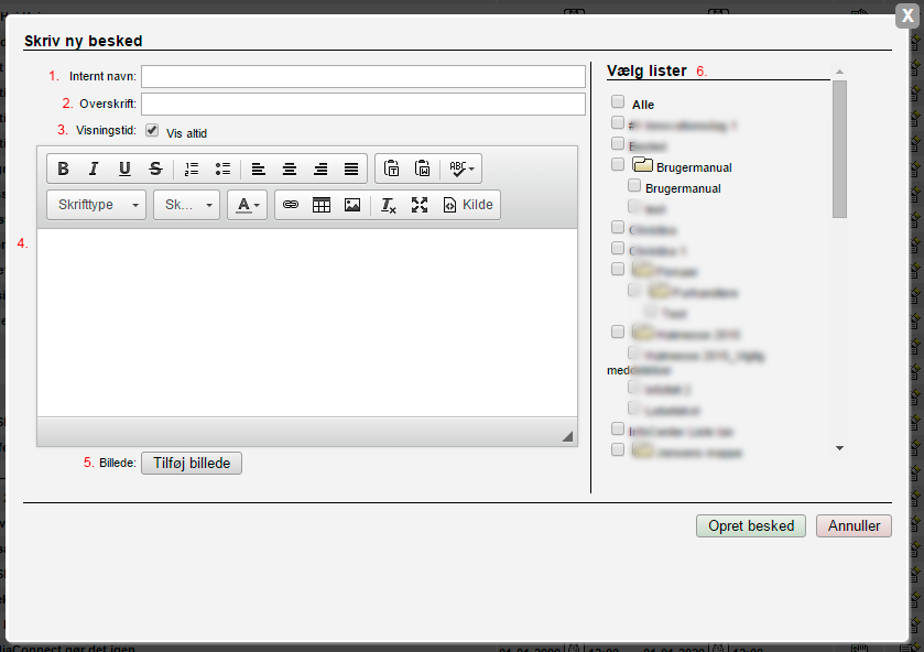 - Opret besked - Tryk her for at oprette en ny besked.